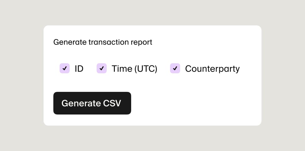Audit-ready reporting. Generate transaction reports, monitor balances, and maintain the finance, legal, and compliance records you need.